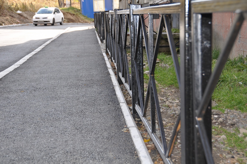 В ходе работ по благоустройству была расширена и заасфальтирована дорога вдоль дома и заезд во двор, предусмотрена парковочная зона для машин, для безопасного движения пешеходов был организован широкий тротуар с высокими бордюрами, установлены новые красивые лавочки и ограждения палисадника, где весной жители планируют разбить цветники.