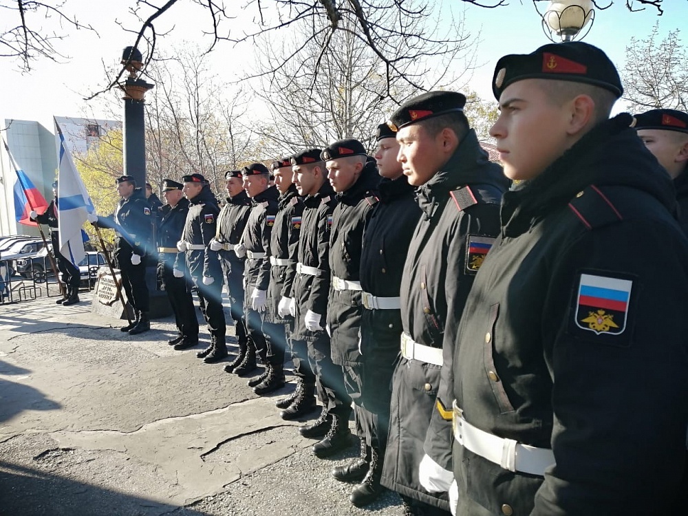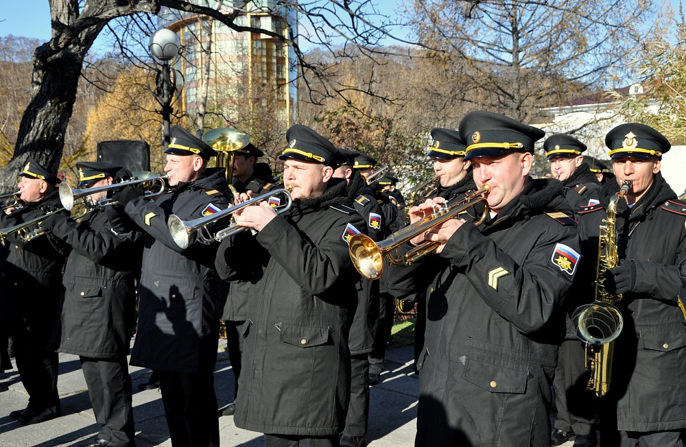 Под аккомпанемент оркестра Группировки войск и сил все неравнодушные жители города смогли возложить венки к основанию памятника Витусу Берингу.