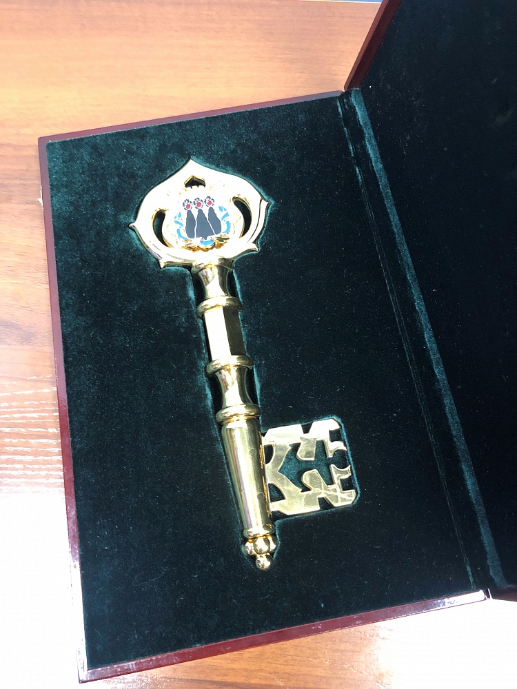 Врио Губернатора Владимир Солодов передал Константину Брызгину символы власти - символический ключ от города и должностной знак Главы Петропавловска. Он пожелал вновь избранному Главе города успехов на новой должности.