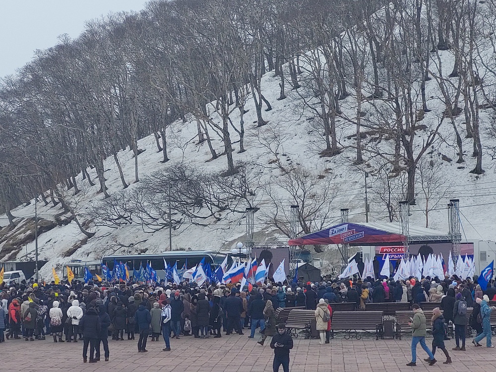 Сегодня, в восьмую годовщину воссоединения Крыма с Россией, на площади у стелы «Город воинской славы» в Петропавловске-Камчатском проходит патриотическое мероприятие, в котором принимают участие представители краевого правительства, Законодательного Собрания региона, депутаты и сотрудники аппарата Городской Думы Петропавловск-Камчатского городского округа.
