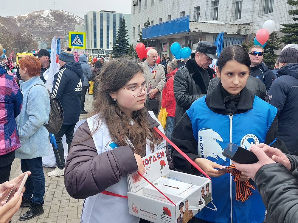 Вместе с главой региона Владимиром Солодовым в первой колонне прошли председатель Законодательного собрания края Ирина Унтилова, глава Петропавловск-Камчатского городского округа Константин Брызгин, председатель ГорДумы Галина Монахова, председатель Федерации профсоюзов Камчатки Максим Кирилич, почётные граждане: государственный и политический деятель Лев Бойцов, краевед, историк Ирина Витер, ветеран труда России Владимир Семчев, заслуженный работник культуры РФ Валентина Перевала, а также четырёхкратная чемпионка и серебряный призёр XIX Сурдлимпийских зимних игр 2019 года заслуженный мастер спорта Елена Яковишина, советская альпинистка и заслуженный тренер Людмила Аграновская.