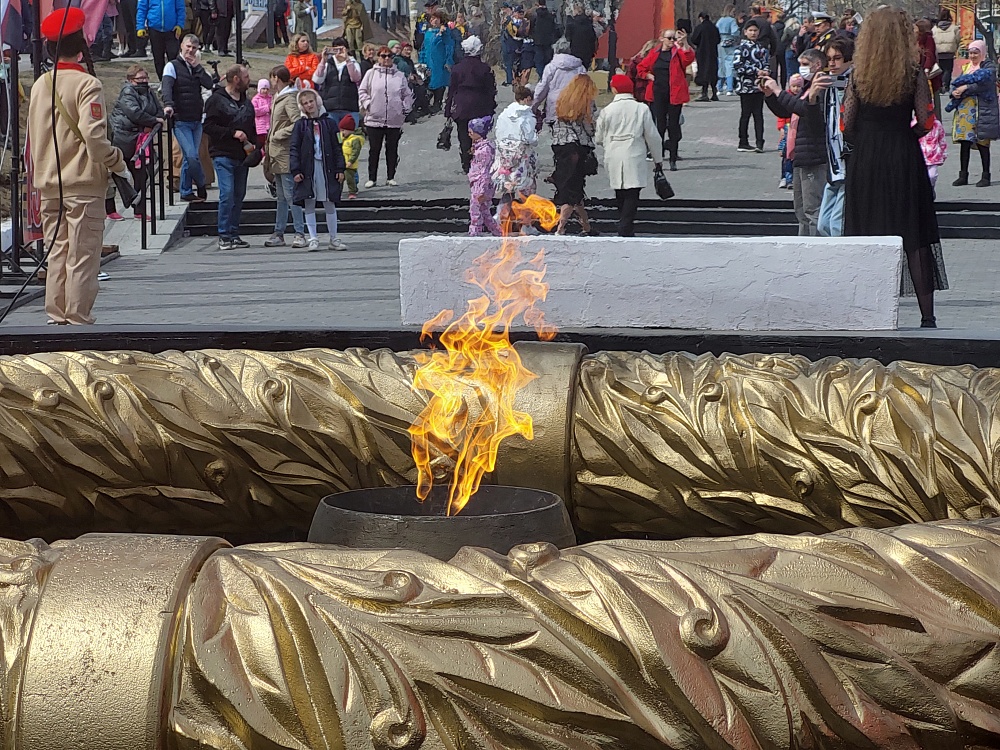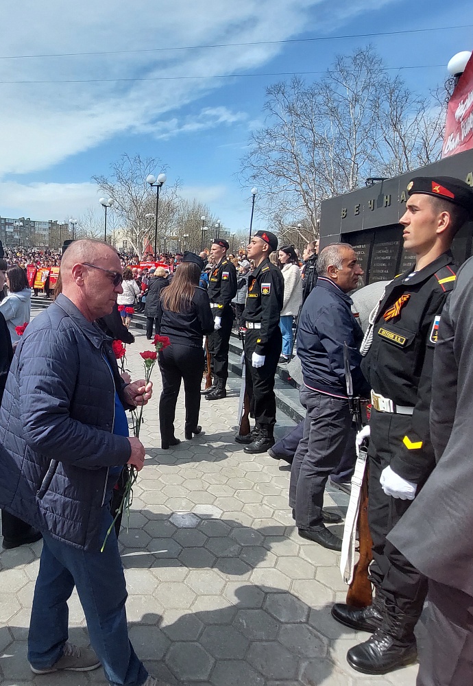 В память о погибших на полях сражений была объявлена минута молчания. Прозвучали залпы оружий, и военнослужащие возложили гирлянду славы к Вечному огню, а жители Петропавловска — цветы.