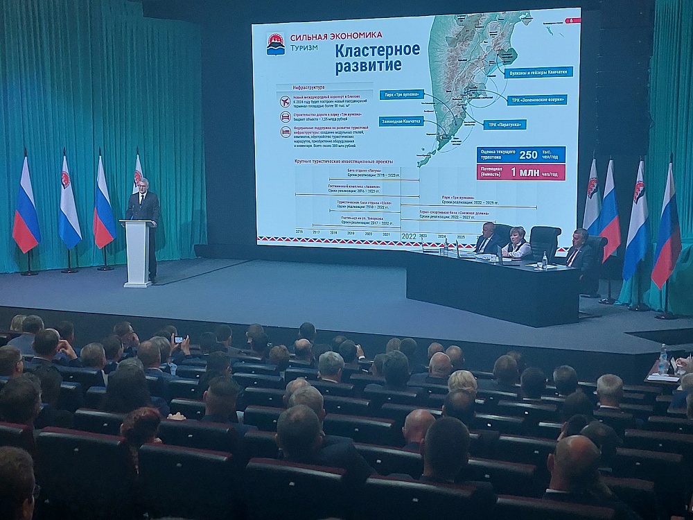 Отчёт губернатора перед депутатами прошёл 21 июня в ходе выездной расширенной сессии Законодательного собрания Камчатского края. Глава региона затронул темы экономической обстановки и поддержки граждан в связи с введёнными санкциями против России, развития рыбопромышленного комплекса и внутреннего туризма, логистики и сельского хозяйства.