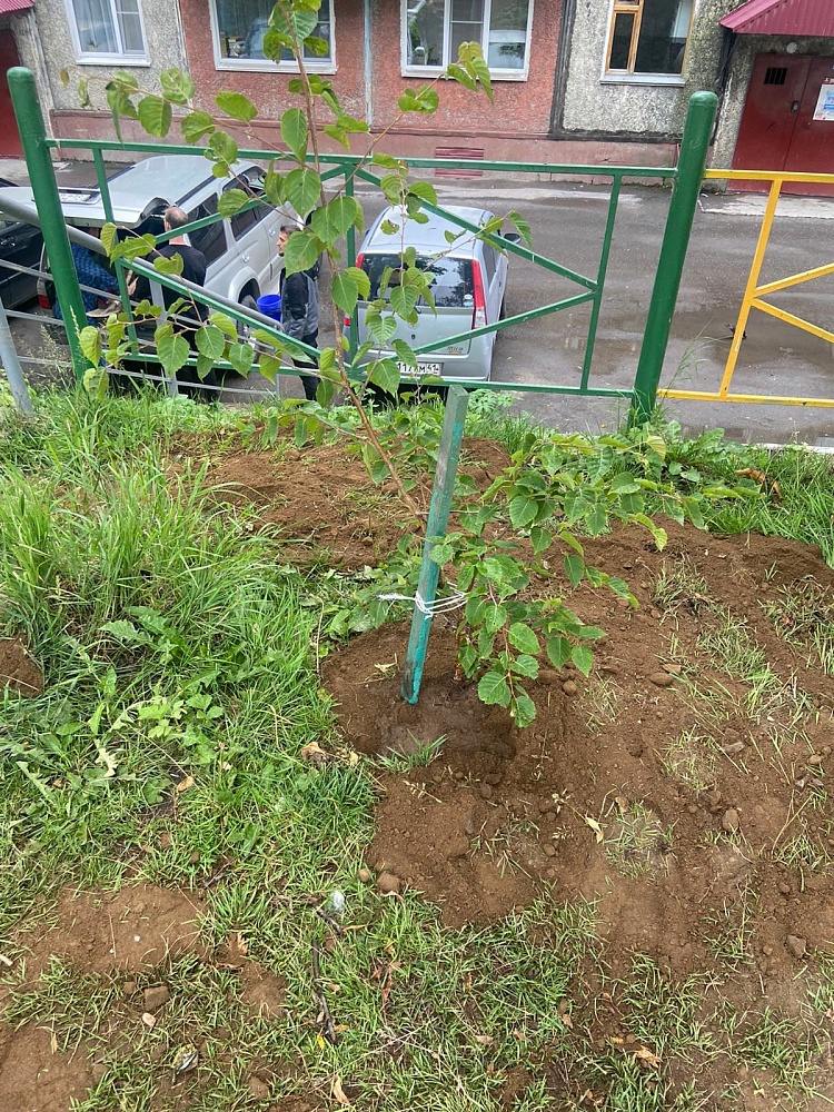 На обращение жителей откликнулась депутат Дарья Кадачигова. Она вместе с руководителем проекта «Камчатка - территория добровольчества» Анной Гуриной организовала возле дома субботник, в ходе которого волонтёры высадили молодые саженцы.