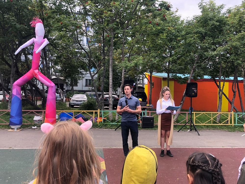 В воскресенье, 4 сентября, состоялся праздник на площадке «Кремль» в честь Дня знаний. Развлекательная программа была организована для жителей микрорайона Горизонт – для родителей и детей на детской площадке проводились конкурсы, эстафеты и музыкальная анимация. Мероприятие прошло при поддержке Управления культуры, спорта и молодёжной политики администрации Петропавловск-Камчатского городского округа. Участие в празднике приняли депутаты Городской Думы Борис Лесков, Дмитрий Шунькин и Дарья Кадачигова.
