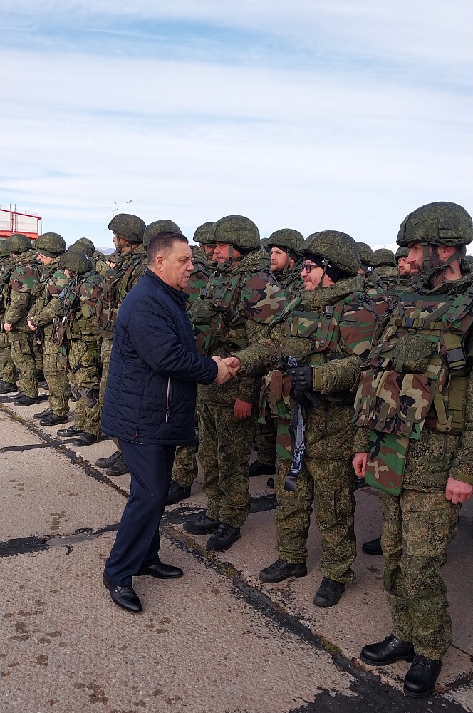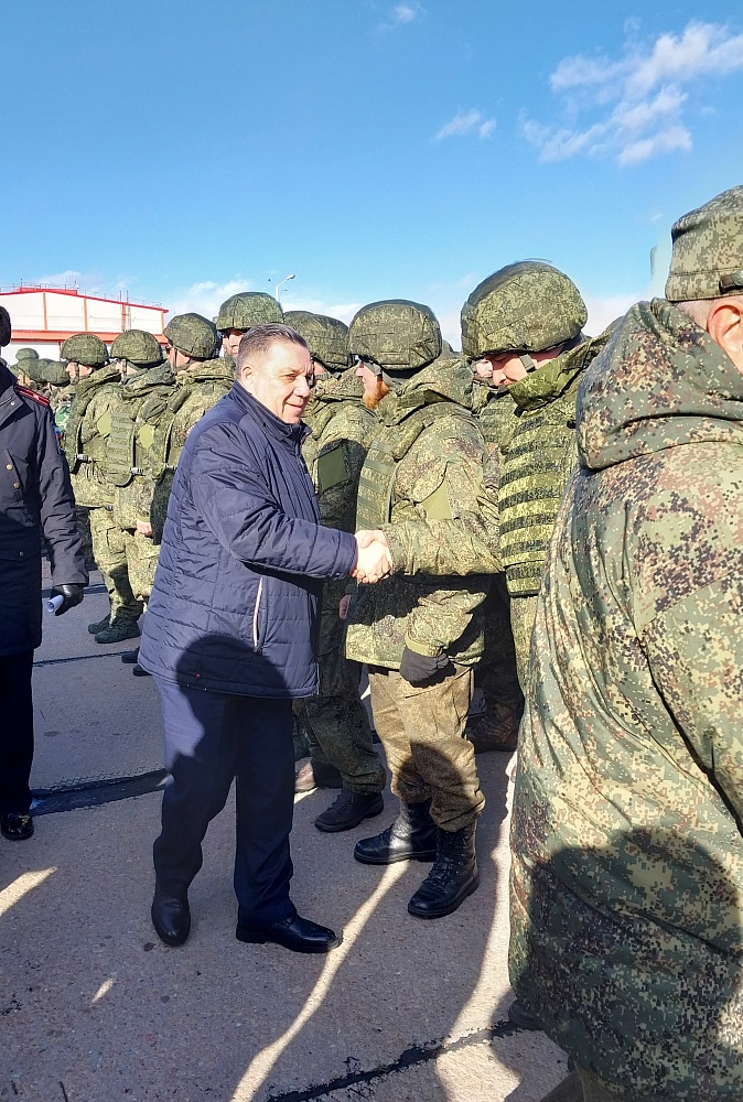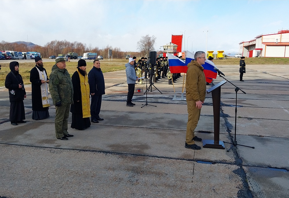 В проводах наших бойцов участвуют губернатор Камчатского края Владимир Солодов, командующий войсками и силами на Северо-Востоке Российской Федерации вице-адмирал Александр Юлдашев, архиепископ Петропавловский и Камчатский Феодор, председатель Городской Думы Петропавловск-Камчатского городского округа Андрей Лиманов.