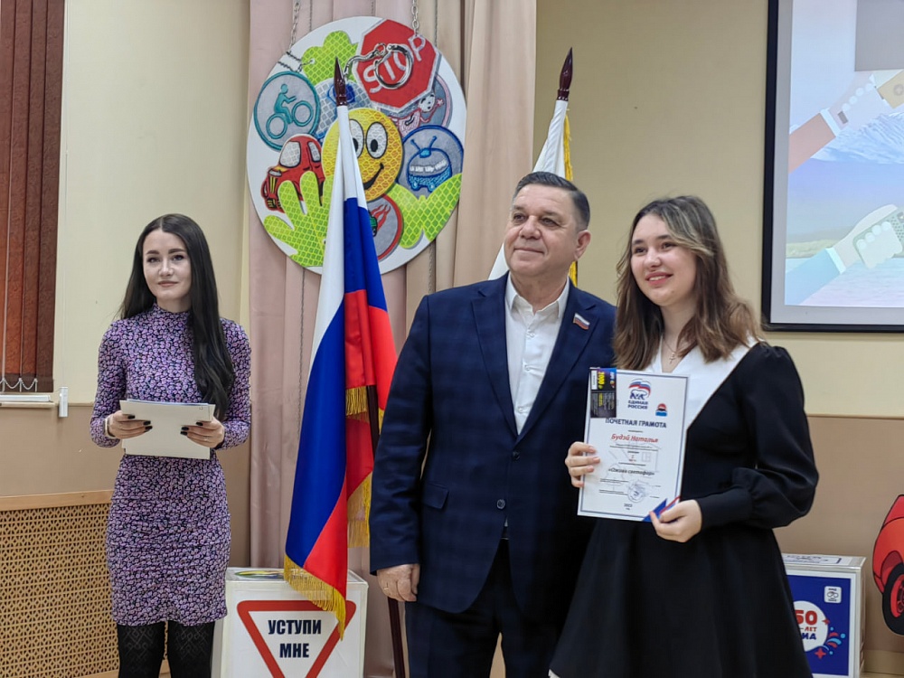 Первое почётное удостоверение участника регионального пресс-центра ЮИД под номером №0001 организаторы мероприятия вручили председателю Городской Думы.