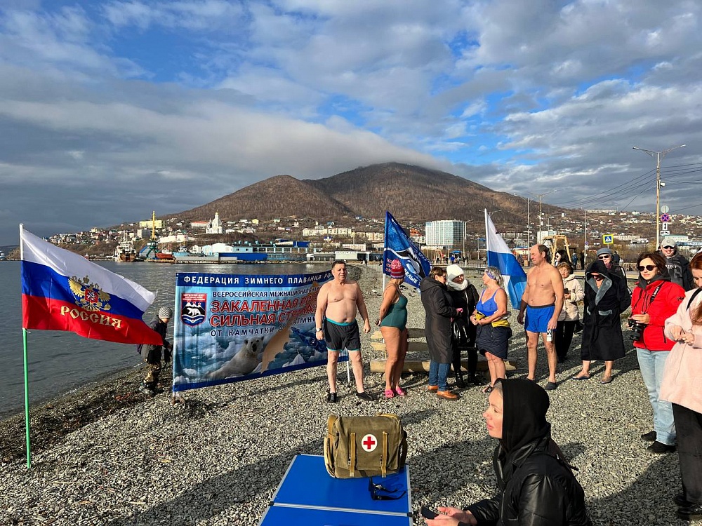 Представители Федерации зимнего плавания Камчатского края «Белые медведи» по традиции совершили заплыв в Авачинской бухте в центре Петропавловска-Камчатского. Председатель Городской Думы Андрей Лиманов на постоянной основе принимает участие в тематических заплывах в любое время года, и считает закаливание основой здоровой нации.