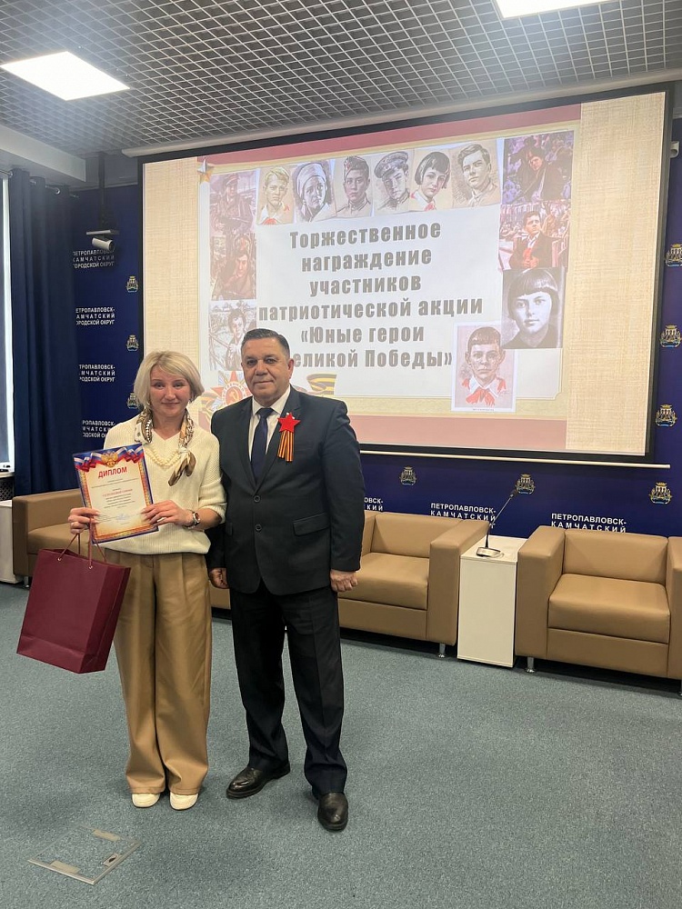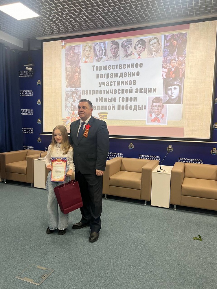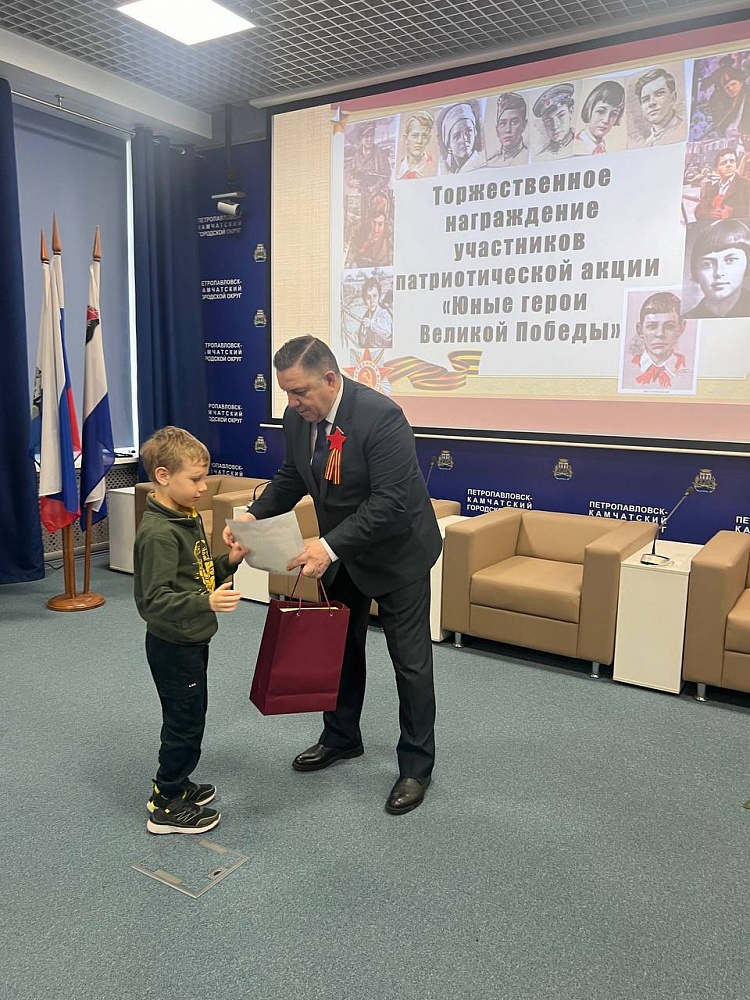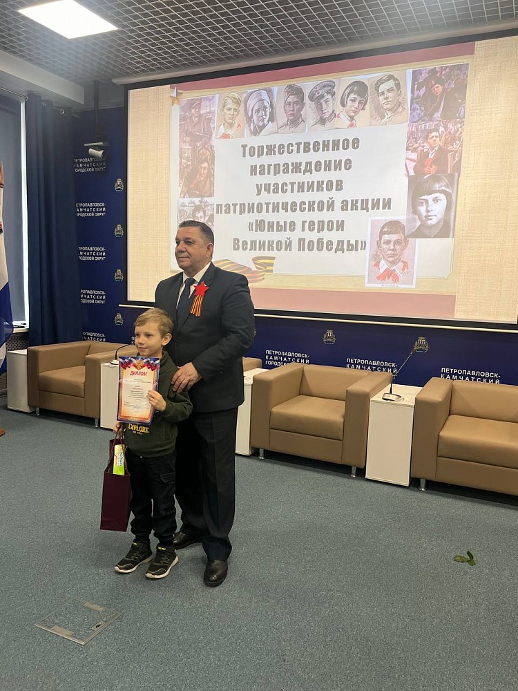 Напомним, конкурс «Юные герои Великой Победы», инициированный Городской Думой, стартовал в краевой столице Камчатки в апреле. Всего в конкурсе приняли участие 53 ребёнка – воспитанники детских садов и школьники в возрасте от 4-16 лет. Участникам предстояло в творческой форме рассказать о юных героях Великой Отечественной войны и их подвигах, совершённых во имя Родины.