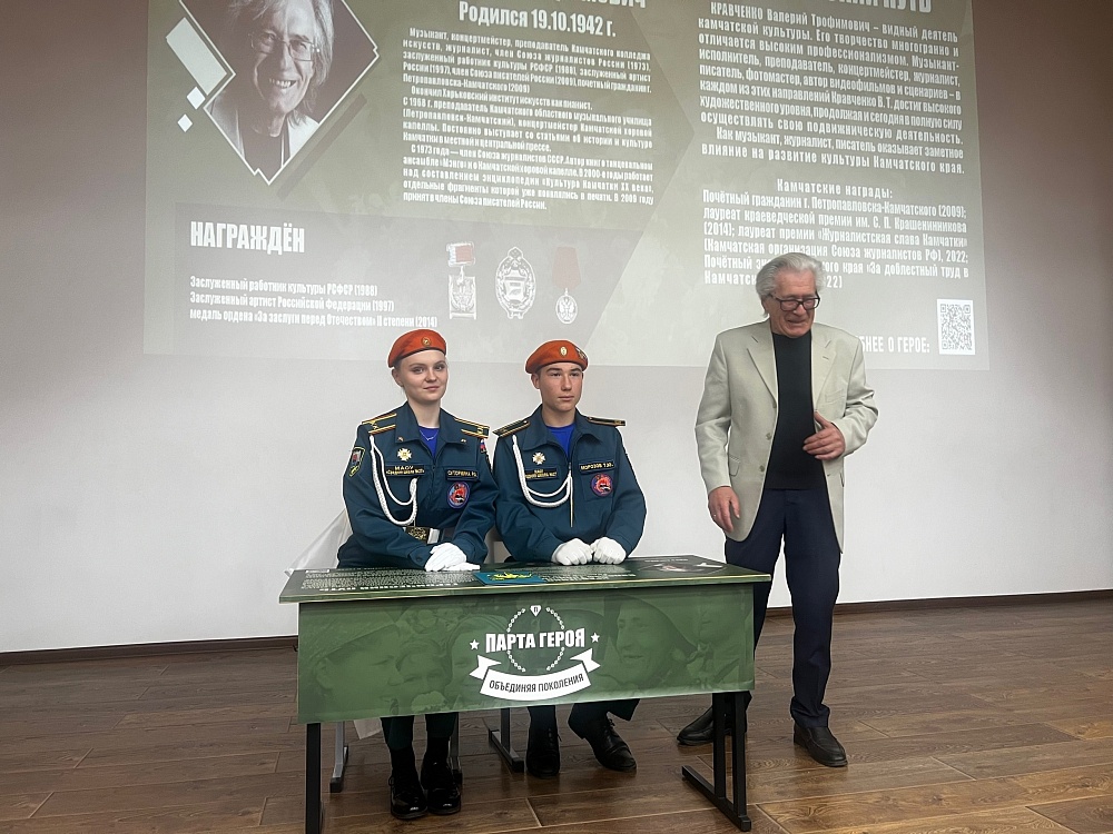 Накануне Дня рождения Валерия Трофимовича - пианиста, преподавателя, концертмейстера, журналиста, писателя, фотографа, летописца Камчатки, парту открыли в средней школе №27.