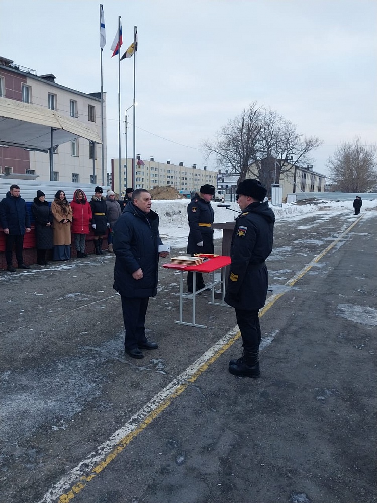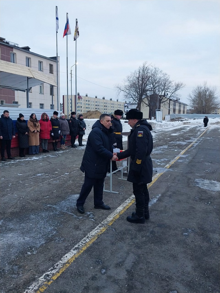 Председатель Городской Думы Андрей Лиманов посетил сегодня 40-ю отдельную гвардейскую Краснодарско-Харбинскую дважды Краснознамённую бригаду морской пехоты Тихоокеанского флота и поздравил военнослужащих с наступающим Днём защитника Отечества. В ходе визита он вручил бойцам почетные грамоты, благодарности и ценные подарки. Пожелал им крепкого здоровья, успехов и спокойной службы.