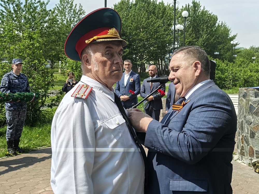В ходе мероприятия председатель Городской Думы Петропавловска наградил ветеранов боевых действий Юрия Жмурко и Александра Нуреева юбилейными медалями Союза городов воинской славы «80 лет Победы в Великой Отечественной войне» за значительный вклад в патриотическое воспитание подрастающего поколения, сохранение военно-исторического наследия, популяризацию событий военной истории России и ее героев.