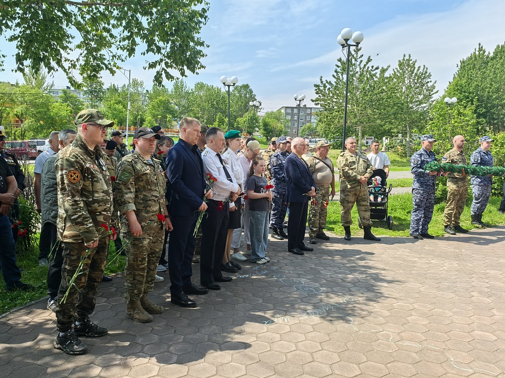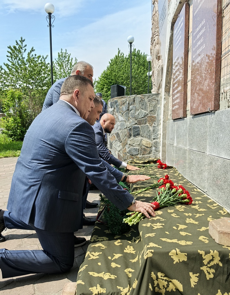 В память о героях, отдавших жизни в военных конфликтах, была объявлена минута молчания. Воины-интернационалисты и бойцы специальных подразделений, выполнявшие воинский долг в «горячих точках», возложили гирлянду и цветы к памятнику участникам боевых действий и ветеранам военной службы.